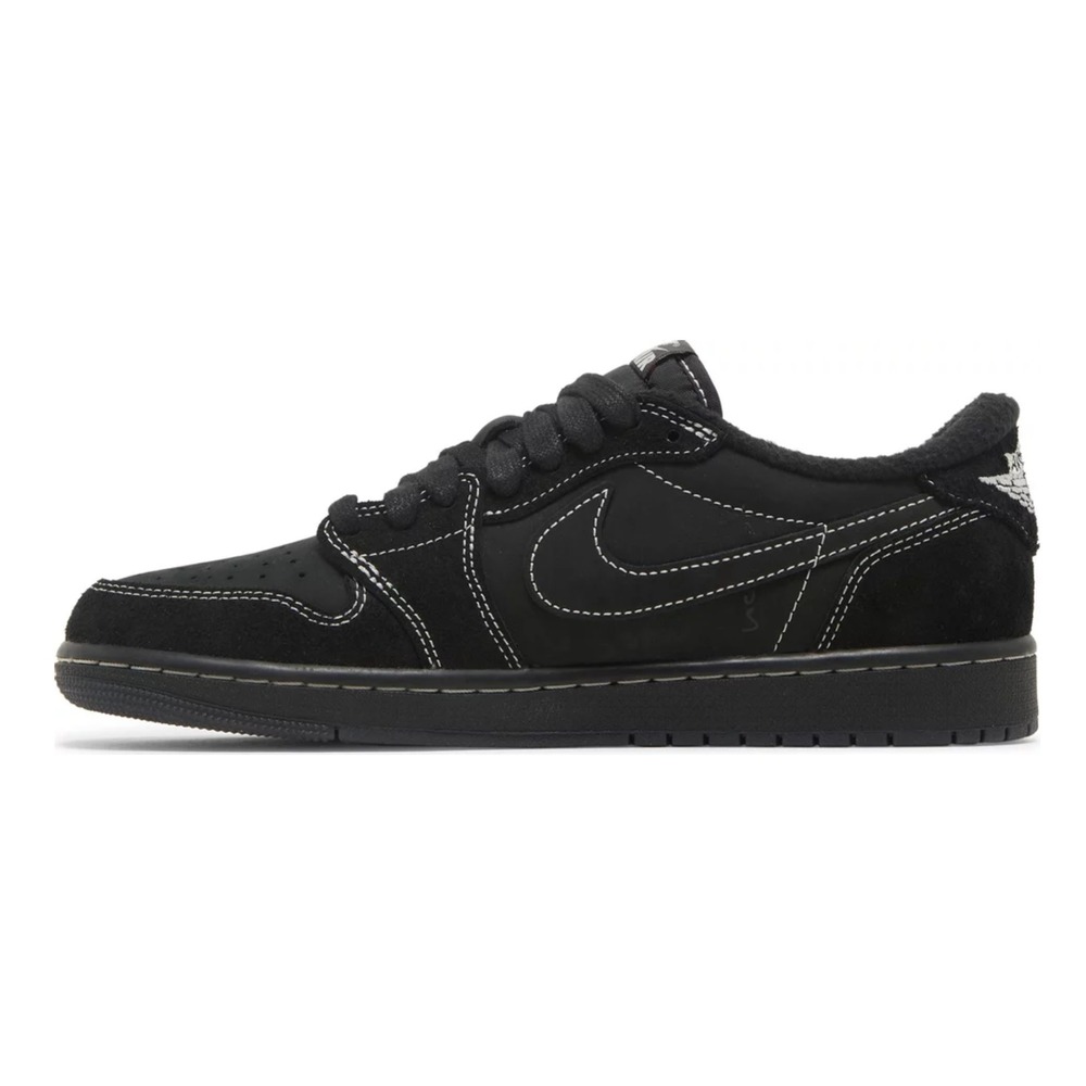 The Jordan 1 Retro Low OG “Travis Scott Black Phantom” features a sleek all-black silhouette accented with contrasting white stitching, offering a subtle yet striking look. Perfect for daily wear while maintaining high collector value.
