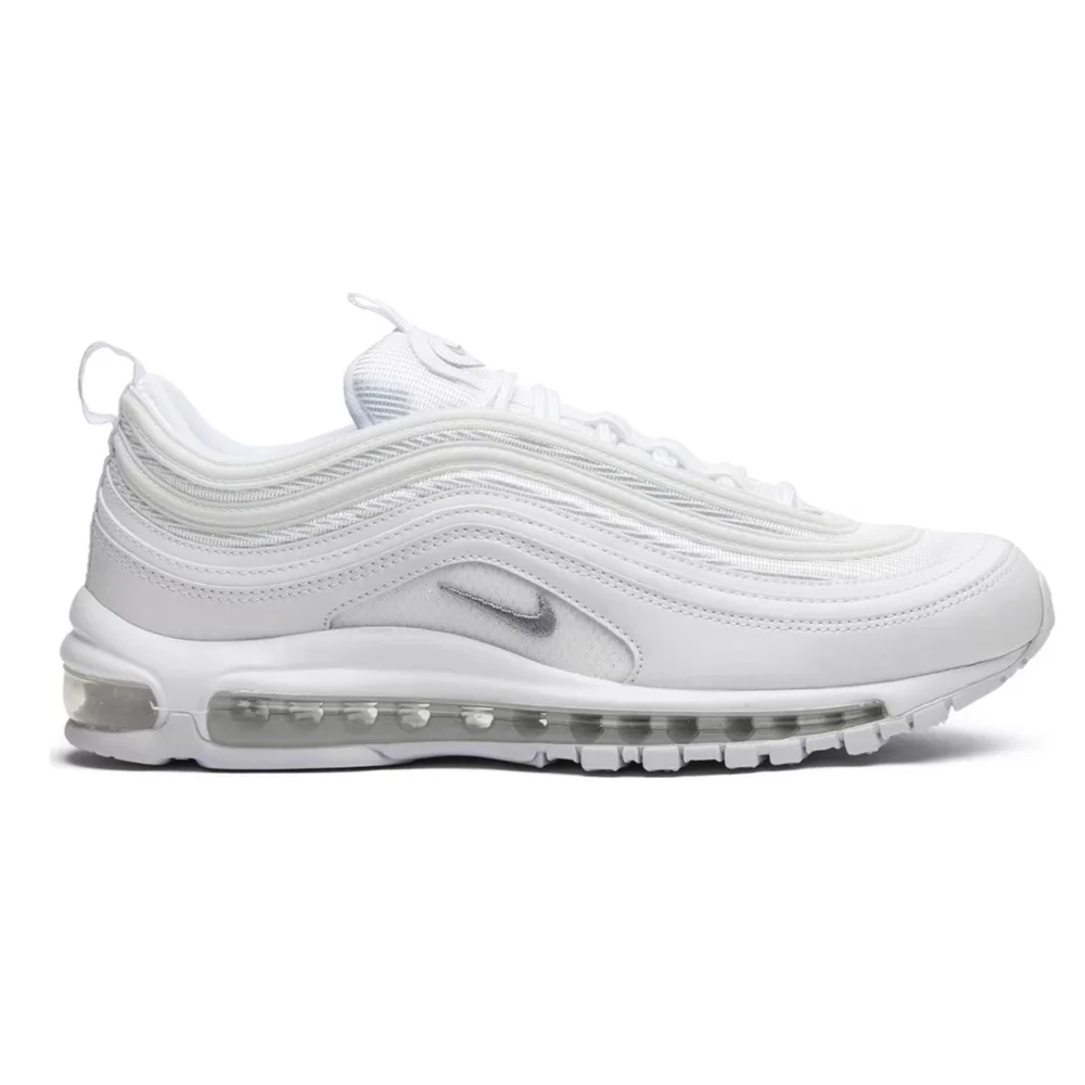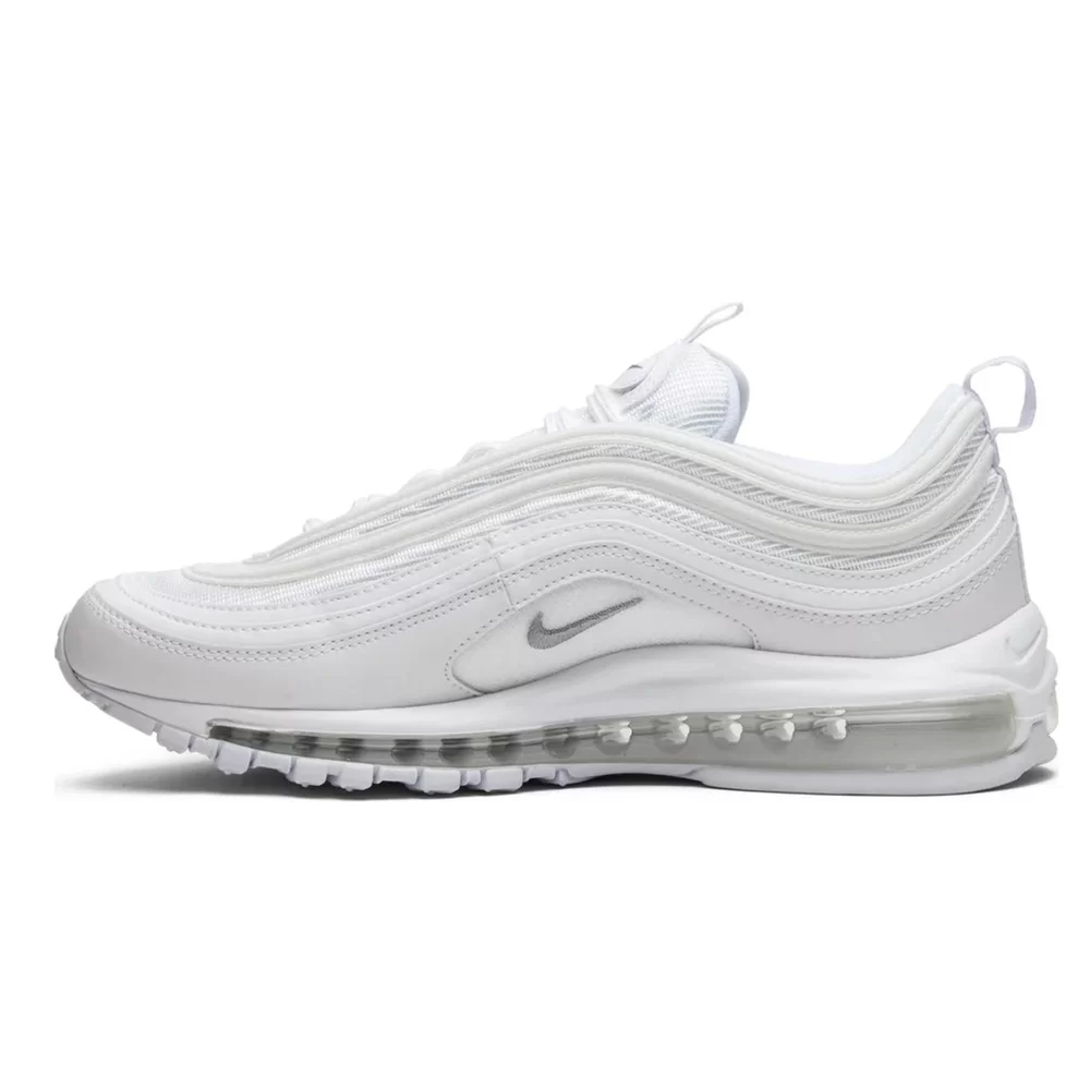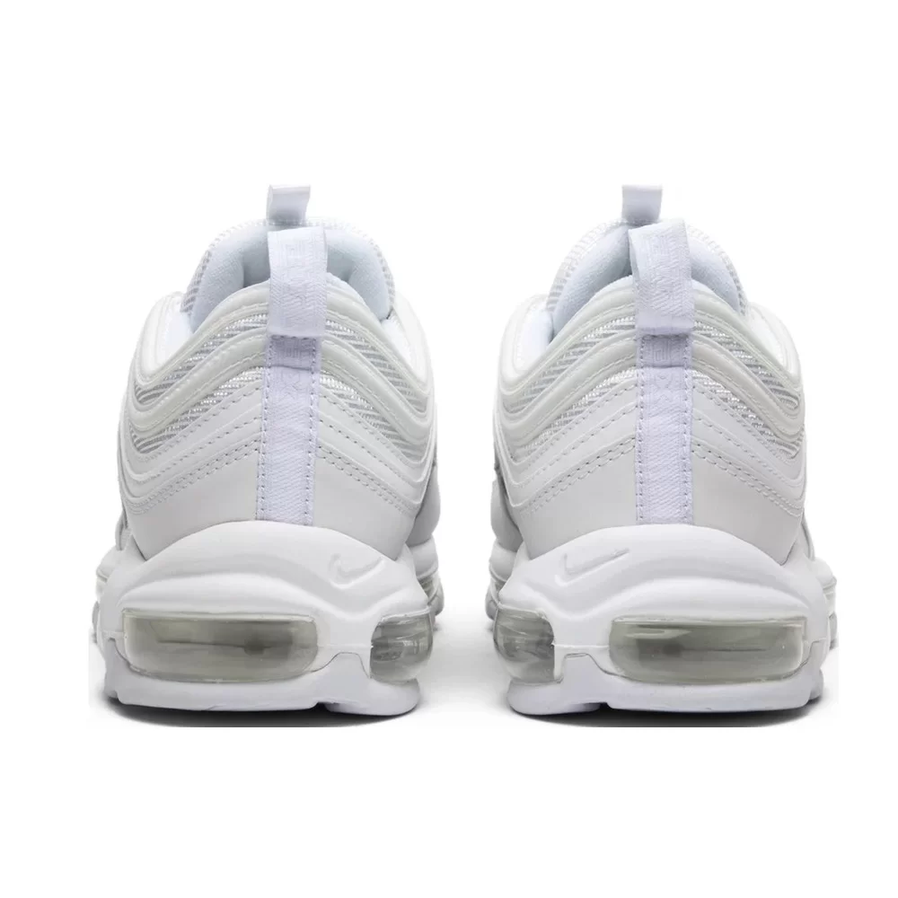 The Nike Air Max 97 Triple White Wolf Grey delivers timeless style with its classic white base and subtle grey accents.